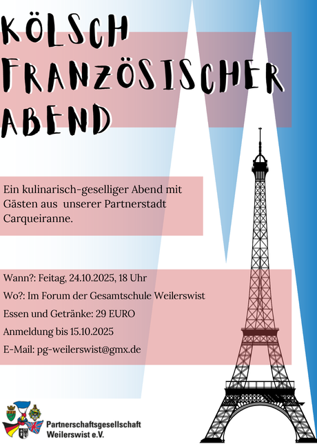 Partnerschaftsfreunde herzlich ein, diesen Abend mit uns zu gestalten und unsere französischen Freunde gebührend willkommen zu heißen. Es wird eine wunderbare Gelegenheit sein, erste Kontakte